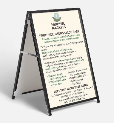 Send through your designs for each side of the sign to info@mindfulmarketsgroup.com.au.